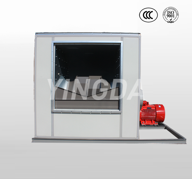 1.1.HTFC-V型柜式離心風機是一種葉片為后傾式箱形離心風機,產(chǎn)品由低噪聲后傾葉片式離心風機、電機、軸承、傳動件、消聲型箱體等組成。根據(jù)安裝位置的不同,提供12種不同的角度的進出風口位置,以滿足用戶不同的安裝需要。根據(jù)消防與通風的不同要求分A式和B式兩種類型,A式電機裝在箱體外,用于消防排煙,并經(jīng)國家消防裝備監(jiān)督質(zhì)量檢驗中心按GA211-2009《消防排煙風機耐高溫試驗方法》進行耐高溫試驗,能在280℃高溫條件下連續(xù)運行60分鐘以上;B式電機裝在箱體內(nèi),用于通風換氣。